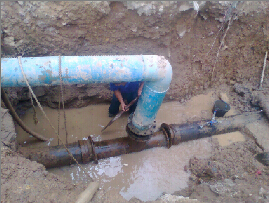 工程名称:新安装的DN300PE生活供水管从原铸铁管上接驳。